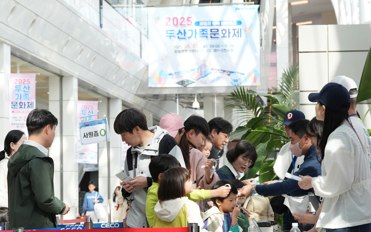| 5일 경남 창원컨벤션센터에서 열린 ‘2025 두산가족문화제’를 찾은 참석자들이 행사장에 입장하기 위해 대기하고 있다. [두산에너빌리티 제공] |