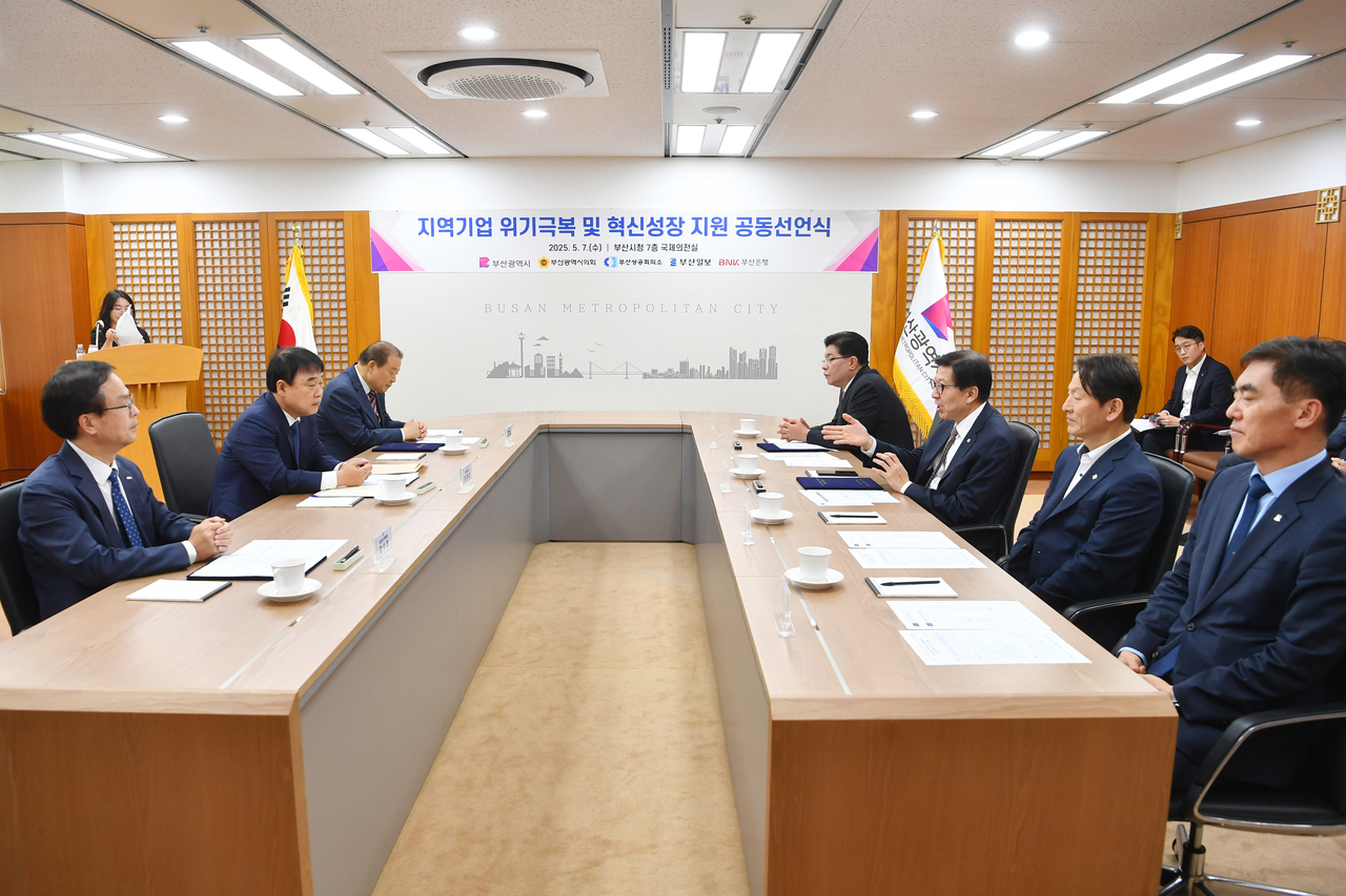 부산시는 7일 오후 시청 국제의전실에서 ‘지역기업 위기 극복 및 혁신 성장지원을 위한 공동선언식’을 개최했다고 밝혔다.