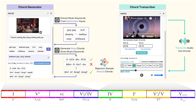 어뮤즈 시스템은 텍스트·이미지·오디오 같은 다양한 형식의 영감을 입력하면 이를 화성 구조(코드 진행)로 변환해 작곡을 지원해 준다.
