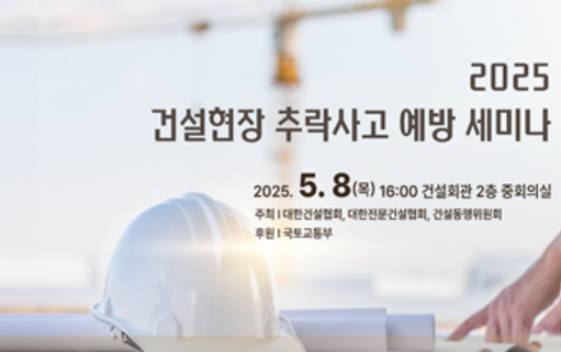 [헤럴드경제=신혜원 기자] 국토교통부는 8일 오후 건설회관에서 ‘건설현장 추락사고 예방 세미나’를 개최한다고 밝혔다.