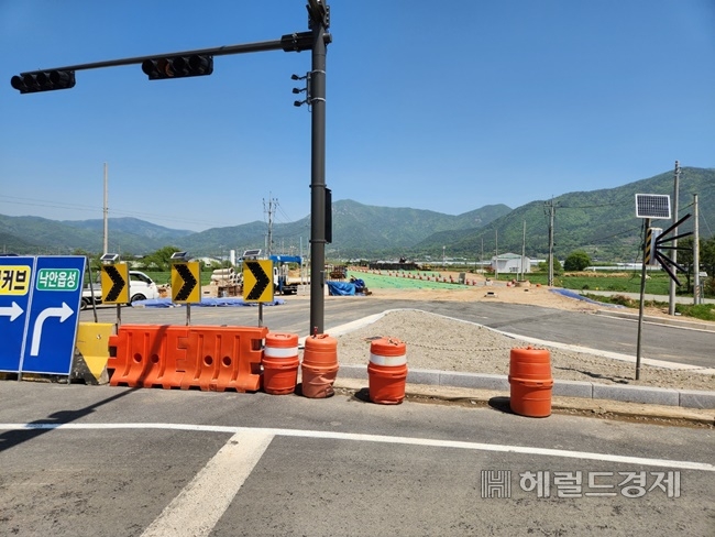 문제가 되는 구간은 최초에는 외지 업체가 2011년 착공했으나 보상 민원에 부담을 느껴 공사를 포기했고, 후임 시공사인 남도건설이 이 사실을 모른 채 2015년 낙찰 받아 이후 10년째 시공 중으로 양만장 일대 구간을 제외한 채 도로 확장공사를 마무리하고 아스팔트 포장을 남겨두고 있다.