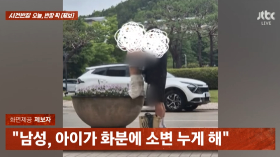 영상을 보면, 남성은 남자 아이를 대형 화분 가장자리에 세워뒀다. 둥근 대형 화분 안에는 관상용 꽃들이 만개했다. 아이는 속옷을 내린 채 였다. 남성은 볼 일을 마친 아이를 그대로 화분 위에 세워둔 채 아이의 속옷과 바지를 올려 줬다. 이어 아이의 티셔츠까지 정리해 주고 “가자~”면서 자리를 떠났다.