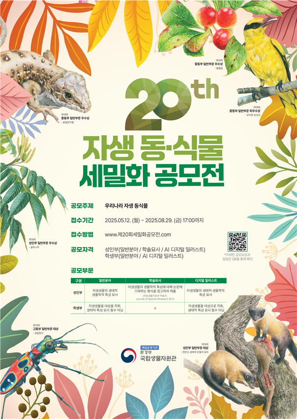 유호 국립생물자원관장은 “이번 공모전이 우리 주변의 다양한 생물을 자세히 살펴보고 그 아름다움과 가치를 공유할 기회가 되기를 바란다”고 말했다.