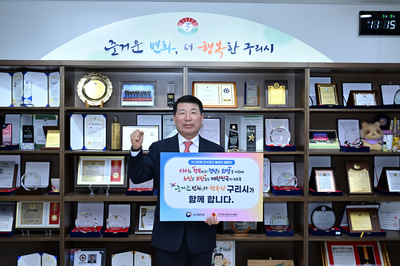 [헤럴드경제=박준환 기자]구리시(시장 백경현)가 보건복지부와 한국보건복지인재원이 공동 주관하는 ‘인구문제 인식 개선 릴레이 캠페인’에 지난 9일 동참했다.