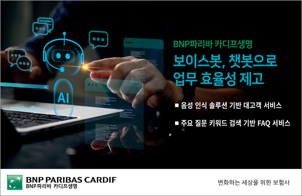 BNP파리바카디프생명은 직원들의 일상 업무 수행을 지원하는 AI 기반 보이스봇(음성로봇)과 ‘FAQ 챗봇’(대화형 로봇)을 연이어 선보이며 업무 효율성 개선 노력을 한층 가속했다.