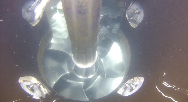 | 수중 드론으로 촬영한 선박 프로펠러 사진. |