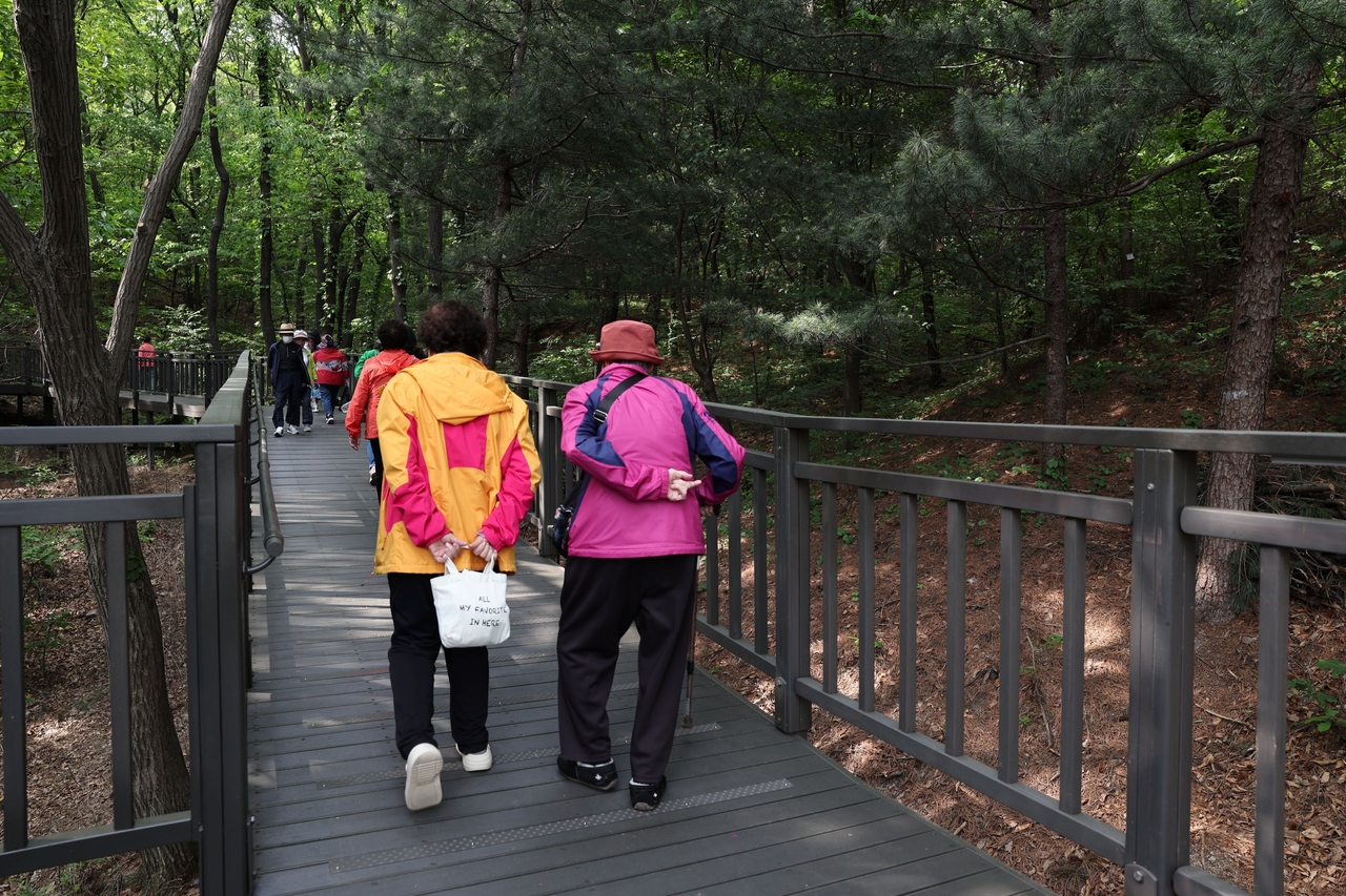| 초안산 무장애숲길을 걷는 시민들. [노원구 제공] |