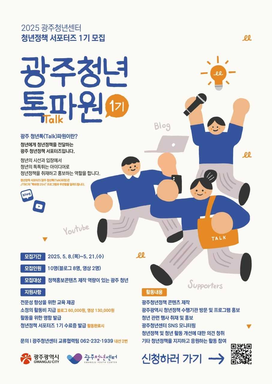 | 광주광역시는 광주 청년정책을 청년의 눈높이에 맞게 알리기 위해 청년정책 서포터즈인 ‘광주청년톡파원’을 운영한다. |