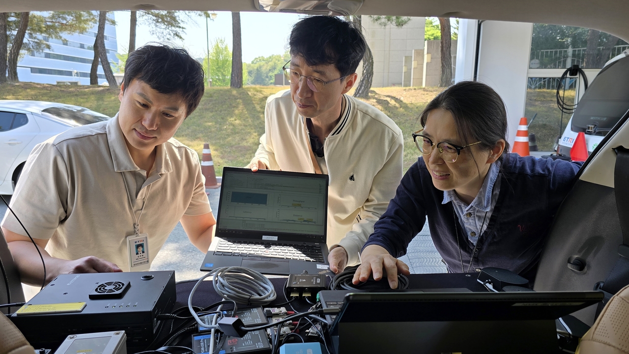 | ETRI 연구진이 이기종 V2X 협력주행 통신기술을 개발하고 있다.[ETRI 제공] |