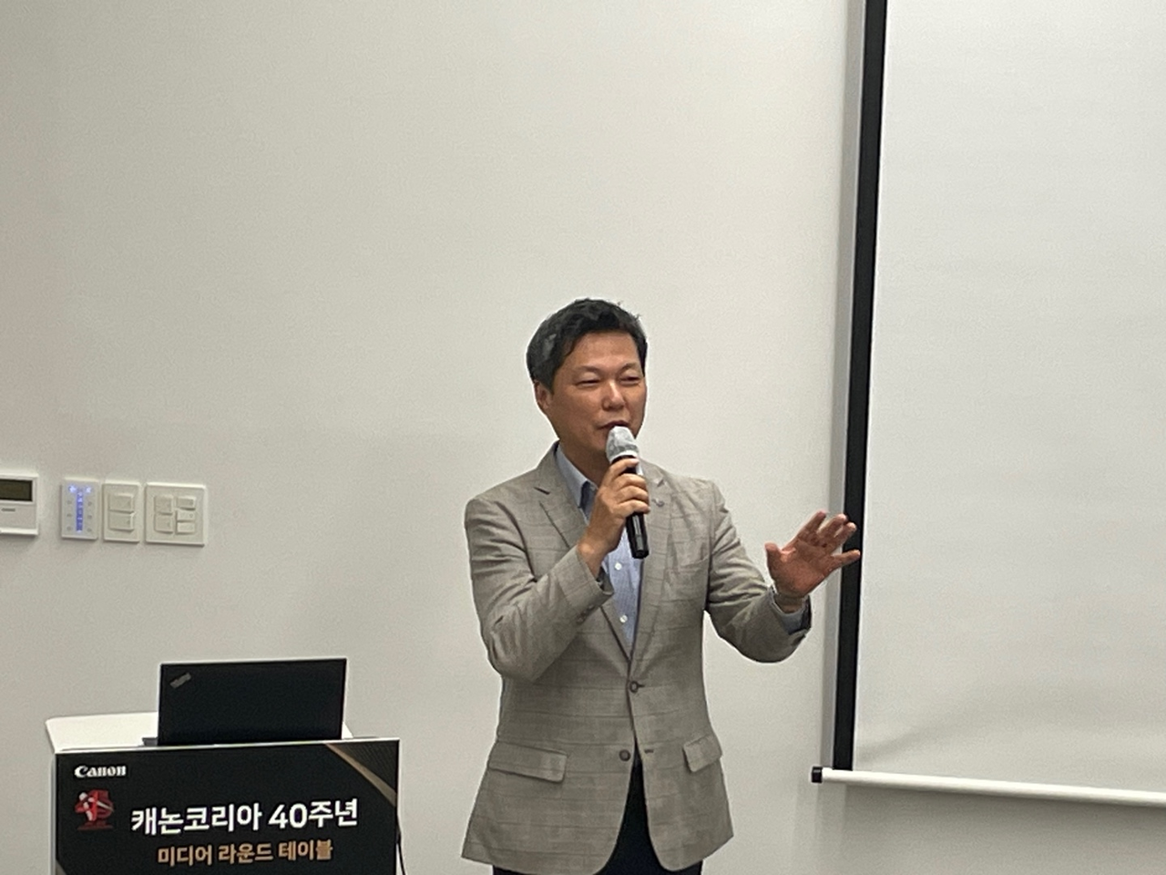 | 15일 캐논코리아 창립 40주년 기념 미디어 라운드 테이블 행사에서 이세철 캐논코리아 영업본부장이 발표하고 있다. [차민주 기자/@chami] |