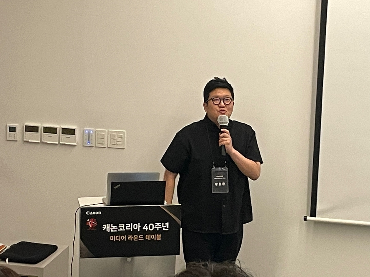 | 15일 캐논코리아 창립 40주년 기념 미디어 라운드 테이블 행사에서 황종환 캐논코리아 매니저가 발표하고 있다. [차민주 기자/@chami] |