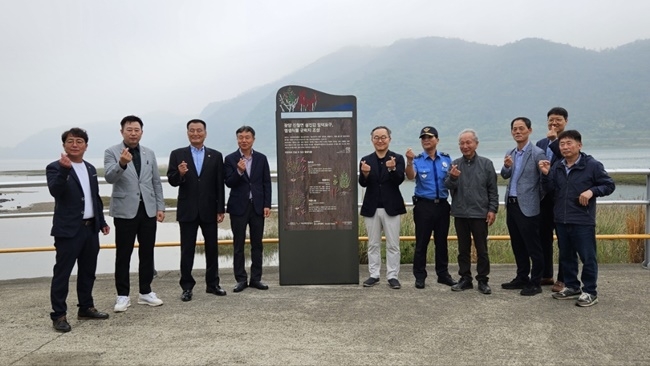 [헤럴드경제(광양)=박대성 기자] 광양시가 15일 진월면 선소리 일원에서 섬진강 망덕포구 염생식물 군락지 조성 안내판 제막식을 개최했다.
