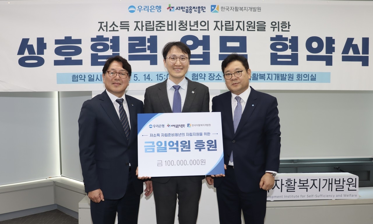 [헤럴드경제=이태형 기자]한국자활복지개발원과 우리은행, 서민금융진흥원은 지난 14일 국내 저소득 자립준비청년 지원을 위한 업무 협약을 체결했다고 15일 밝혔다.