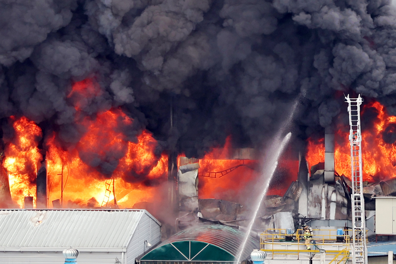 이날 화재로 공장 직원 1명이 중상을 입었고 소방대원 2명도 상처를 입어 치료받았다.