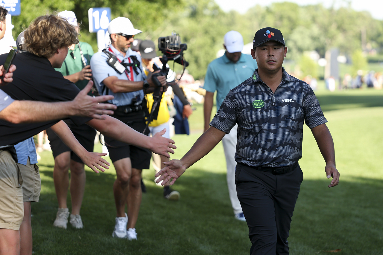 | 3라운드 도중 16번 홀로 이동하며 갤러리와 인사하는 김시우. [사진=PGA 오브 아메리카] |