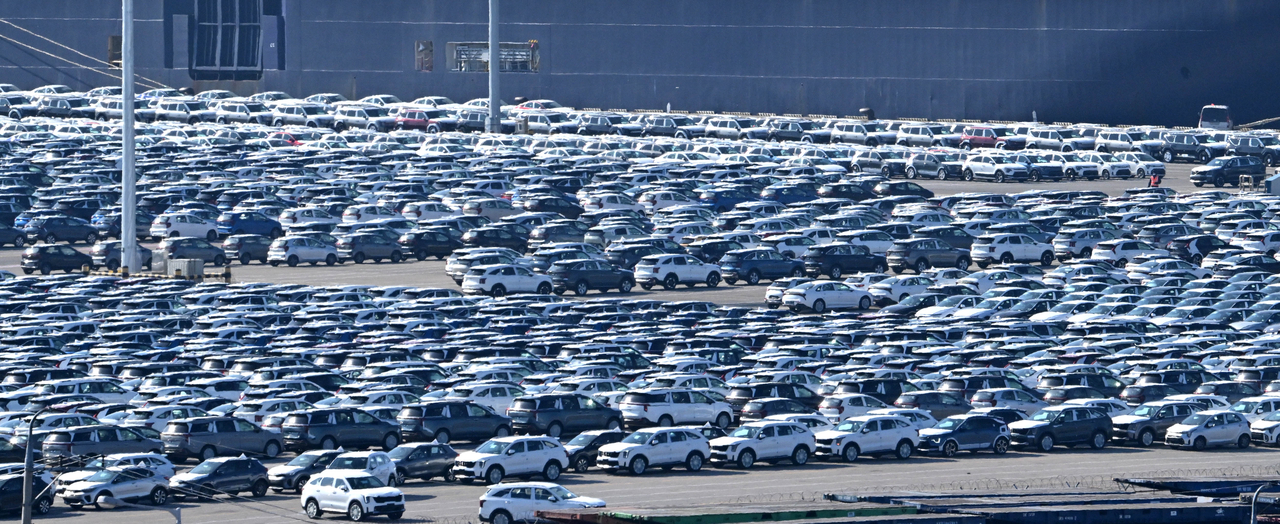 | 경기도 평택항 내 자동차 전용부두에 선적을 기다리는 수출용 차량이 세워져 있다. [헤럴드DB] |