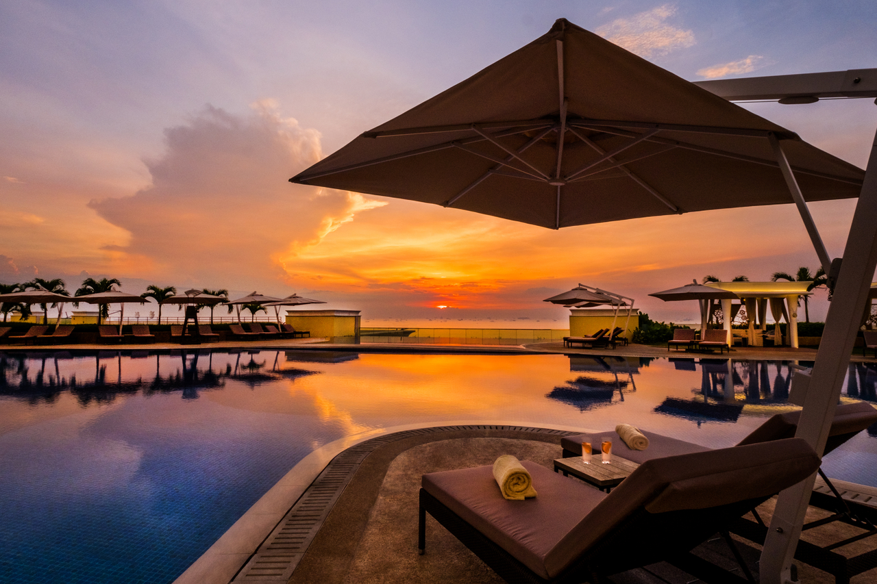 밖에 있는 ‘더 풀’은 코 앞이 마닐라만이라서, 사진을 찍으면 ‘바다 위의 바다’에서 노니는 것 같은 풍경이 나온다. 이곳에서의 노을 사진은 인생 최고 장면이 된다.
