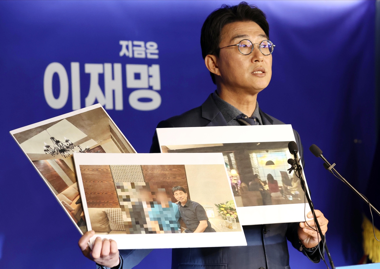 [헤럴드pic] 사진을 공개하는 노종면 더불어민주당 선대위 대변인 글꼴 선택 본문 텍스트 크게본문 텍스트 작게 인쇄 [헤럴드경제=이상섭 기자] 노종면 더불어민주당 선대위 대변인이 19일 서울 여의도 당사에서 윤석열 전 대통령의 내란 혐의 사건 재판장인 지귀연 서울중앙지법 부장판사가 유흥업소에서 접대받은 의혹을 제기하며 관련 사진을 공개하고 있다.