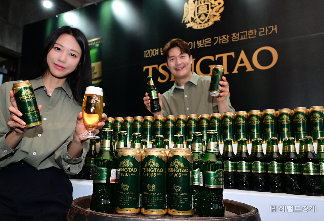 [헤럴드pic] 칭따오 1903 출시 글꼴 선택 본문 텍스트 크게본문 텍스트 작게 인쇄 [헤럴드경제=이상섭 기자] 20일 오전 서울 중구 L7 명동 바이 롯데에서 열린 칭따오 1903 출시행사에서 모델들이 제품을 선보이고 있다. 이번에 출시된 칭따오 1903는 브랜드가 시작된 1903년에서 이름을 가져온 것으로 당시 브랜드 첫 양조자 이름인 오거타의 오리지널 레시피 대로 양조한 것이 특징이다.