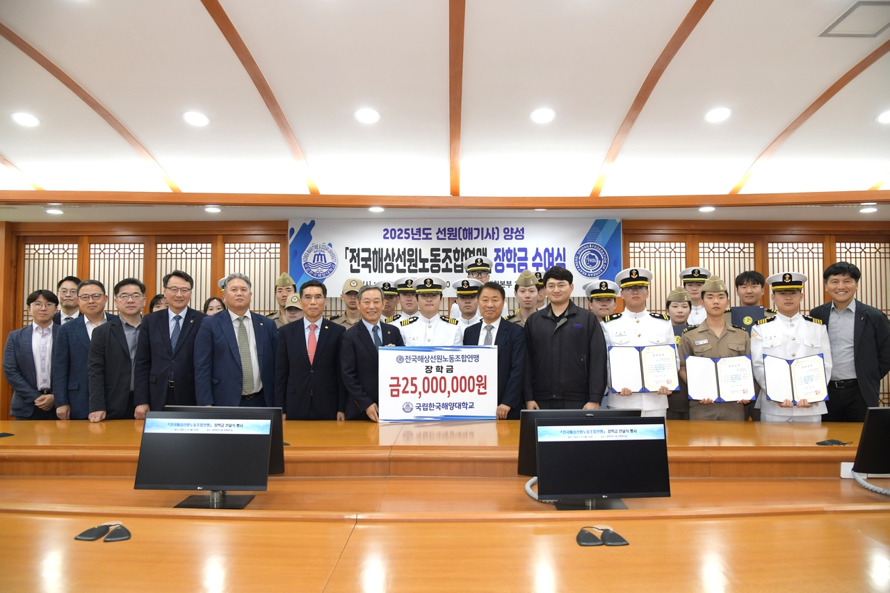 [헤럴드경제(부산)=홍윤 기자] 국립한국해양대학교는 전국해상선원노동조합연맹(선원노련)으로부터 2500만원의 장학금을 전달받았다고 20일 밝혔다.