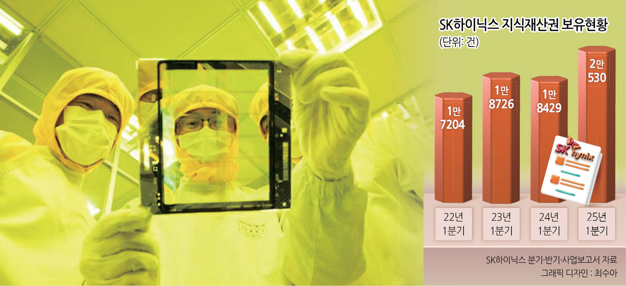 21일 SK하이닉스가 최근 금융감독원에 제출한 1분기 보고서에 따르면 3월 말 현재 SK하이닉스가 보유한 IP 수는 2만530개로 집계됐다. 지난해 1분기 1만8429개와 비교하면 2101개(11.4%) 늘어난 수치다. SK하이닉스의 IP 보유 개수(각연도 1분기 기준)는 ▷2022년 1만7204개 ▷2023년 1만8726개 ▷2024년 1만8429개 ▷2025년 2만530개로 거의 매해 꾸준히 증가하는 모습이다.