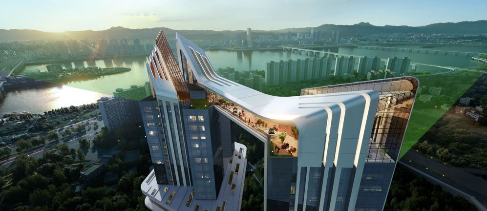 | 여의도노들섬이촌한강공원까지 이어지는 파노라마 뷰 방향으로 배치해 커뮤니티시설에서도 한강조망이 가능한 해당 스카이브릿지. [HDC현대산업개발 제공] |