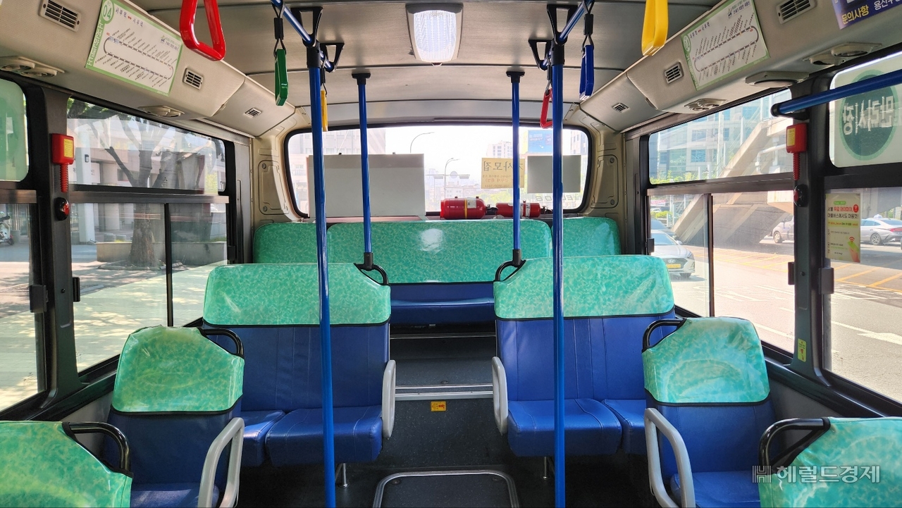 | 텅 빈 마을버스 안. 안효정 기자. |