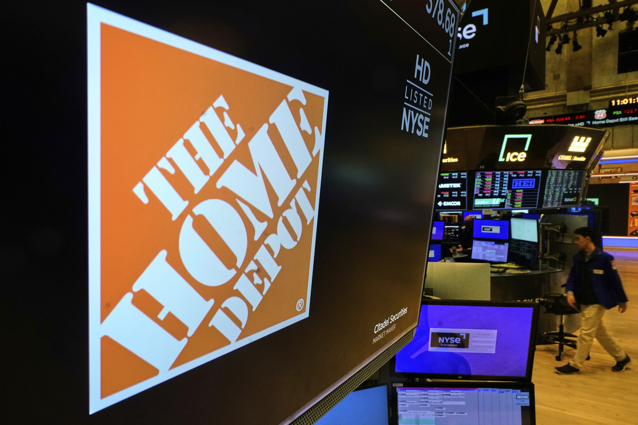 | 뉴욕 증권 거래소에 Home Depot 로고가 표시되어 있다. [AP] |