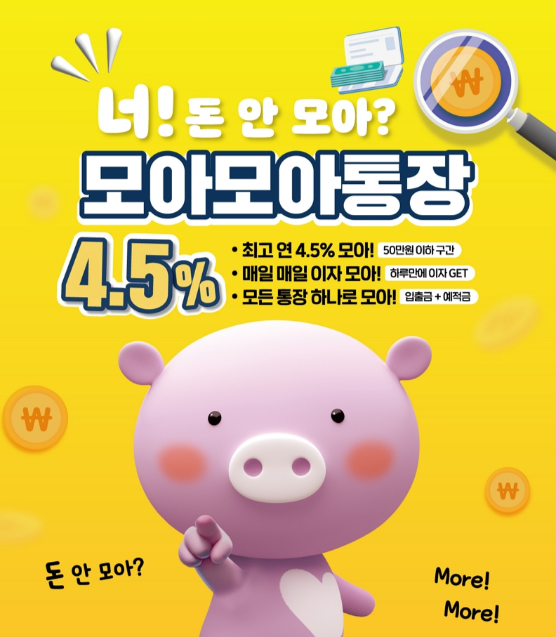 모아모아통장은 예치금 구간별로 차등금리를 적용해, 고객의 실질적인 수익률을 높인 것이 특징이다. 50만원 이하 예치 시 기본 금리 연 3.5%가 적용되며, 신규 고객에게는 1.0%포인트 우대 이율을 적용해 최고 연 4.5%의 금리를 받을 수 있다. ▷50만원 초과 300만원 이하 시 연 1.75% ▷300만원 초과 500만원 이하 시 연 2.5% ▷500만원 초과 시 연 1.0% 금리를 제공한다. 온뱅크 앱에서는 매일 지급되는 이자를 확인할 수 있어 금리 혜택을 직관적으로 체감할 수 있다.