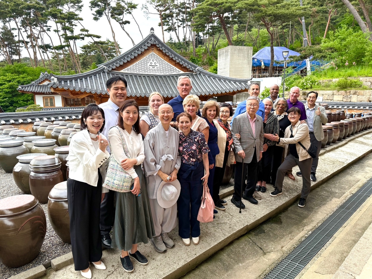 | 전직 미국 연방하원의원들로 구성된 방한단이 지난 17일 진관사(서울 은평구)를 방문해 한국문화를 체험하고 있다.(제공=김창준한미연구원) |