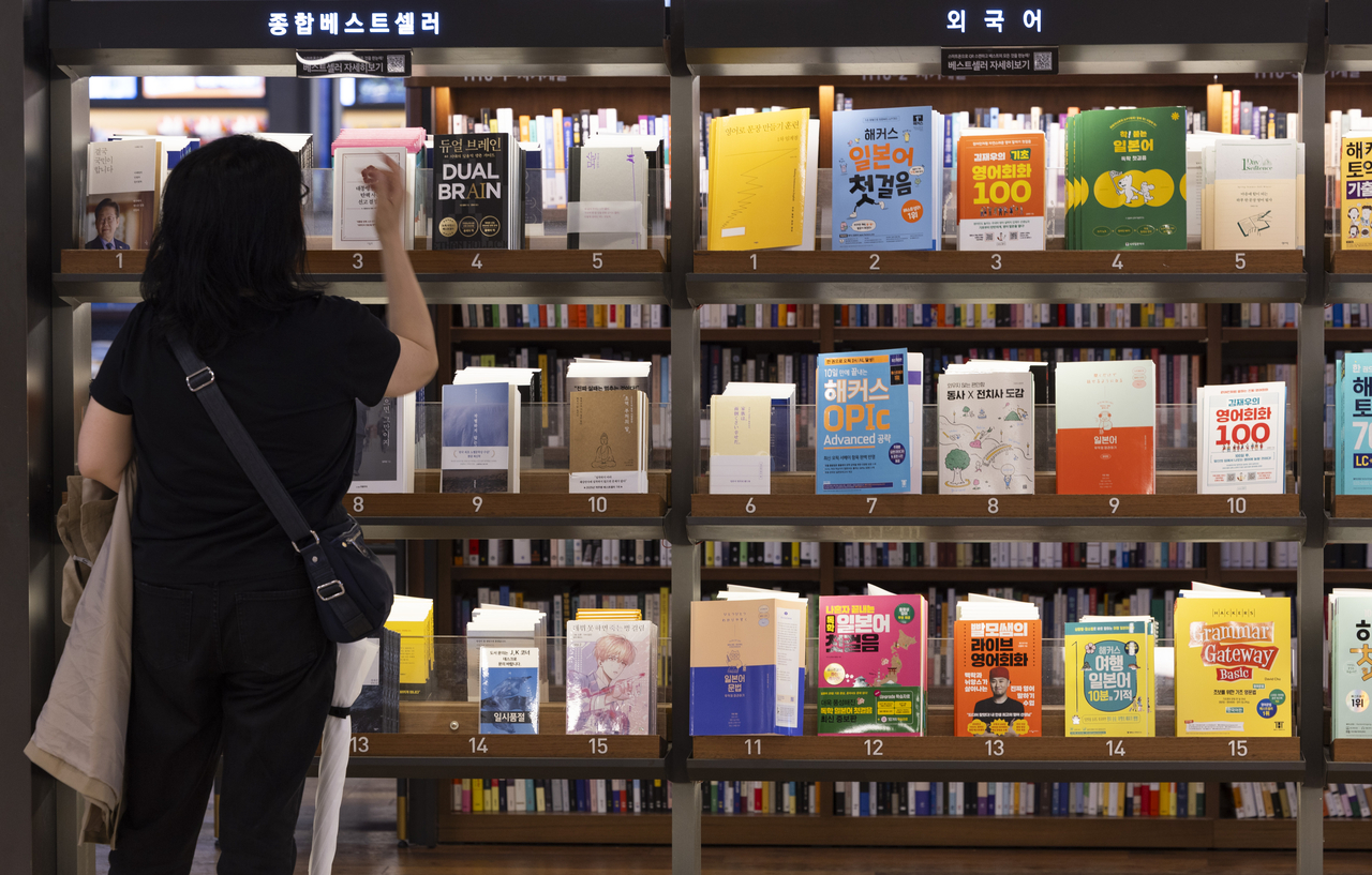 | 서울 종로구 교보문고 광화문점을 찾은 시민이 베스트셀러를 고르고 있다. [연합뉴스] |