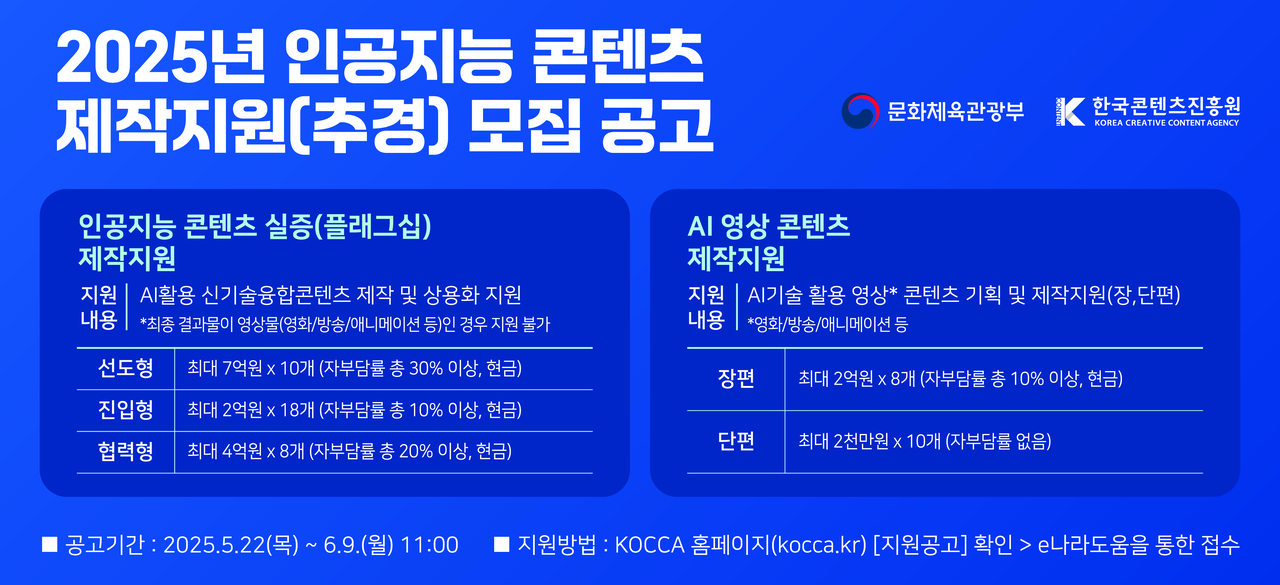| 인공지능 콘텐츠 제작 지원 사업 공모 안내. [문화체육관광부] |