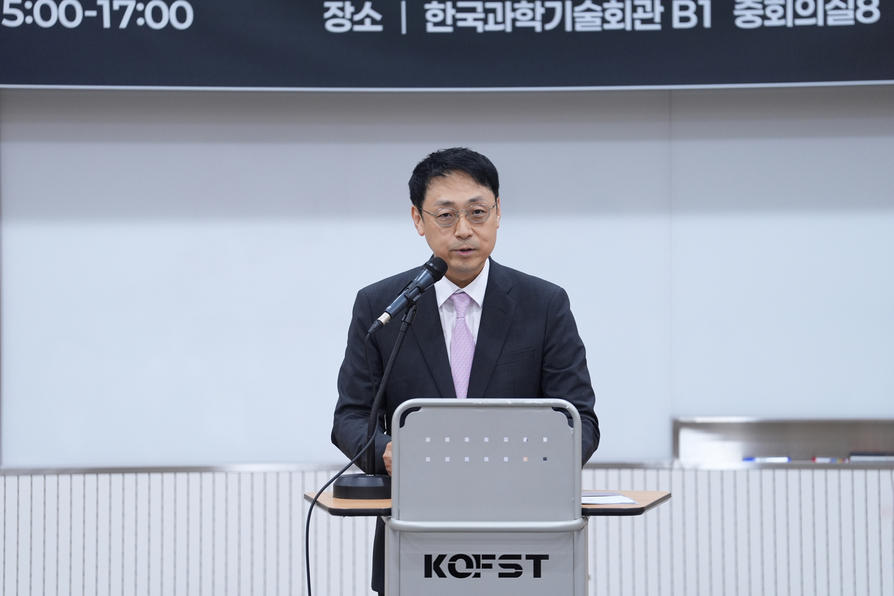 | 윤지웅 STEPI 원장이 21일 열린 ‘STEPI-과실연’ 공동포럼에서 개회사를 하고 있다.[STEPI 제공] |