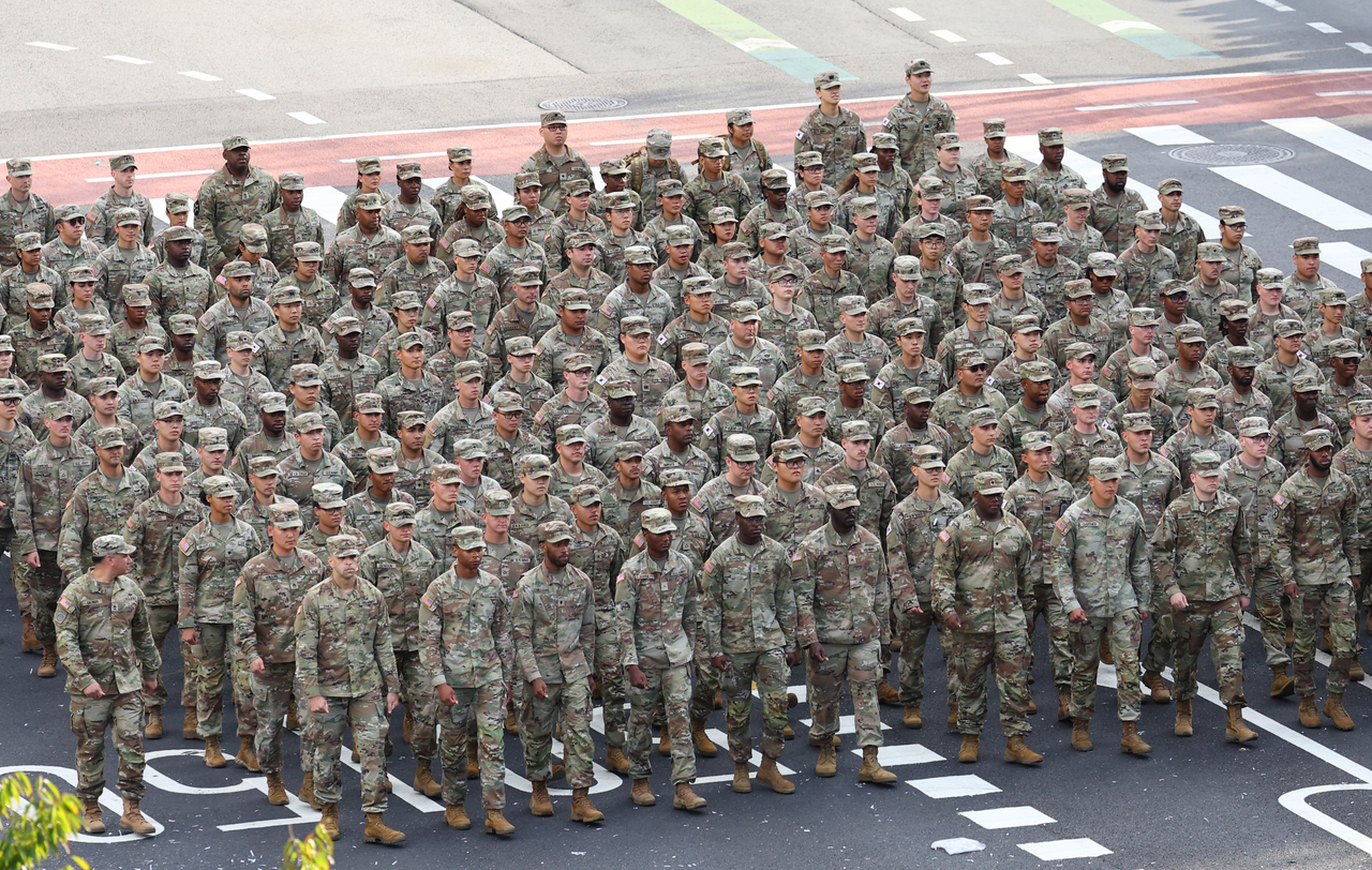 | 6·3 대선을 통한 한국의 새 정부 출범이 10여일 앞으로 다가온 가운데 주한미군 감축 및 일부 철수론이 불거졌다. 2024년 10월 1일 서울 중구 세종대로 일대에서 열린 건군 76주년 국군의 날 기념 시가행진에서 주한 미군부대 장병들이 행진하고 있다. [뉴시스] |