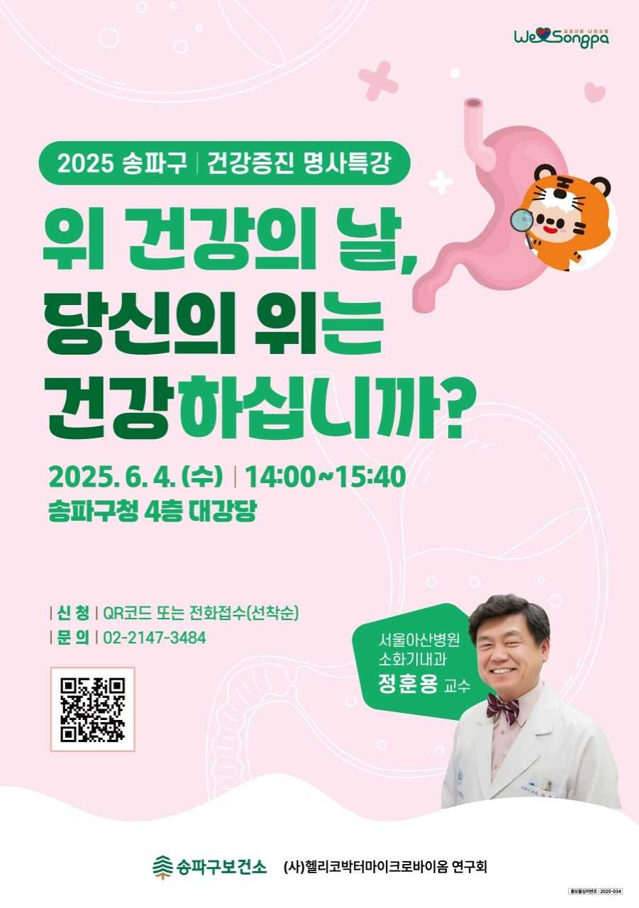 송파구 보건소와 (사)헬리코박터마이크로바이옴 연구회가 공동으로 특강을 마련했다. 대상은 건강에 관심이 있는 모든 지역주민이며 별도 참여비용은 없다.