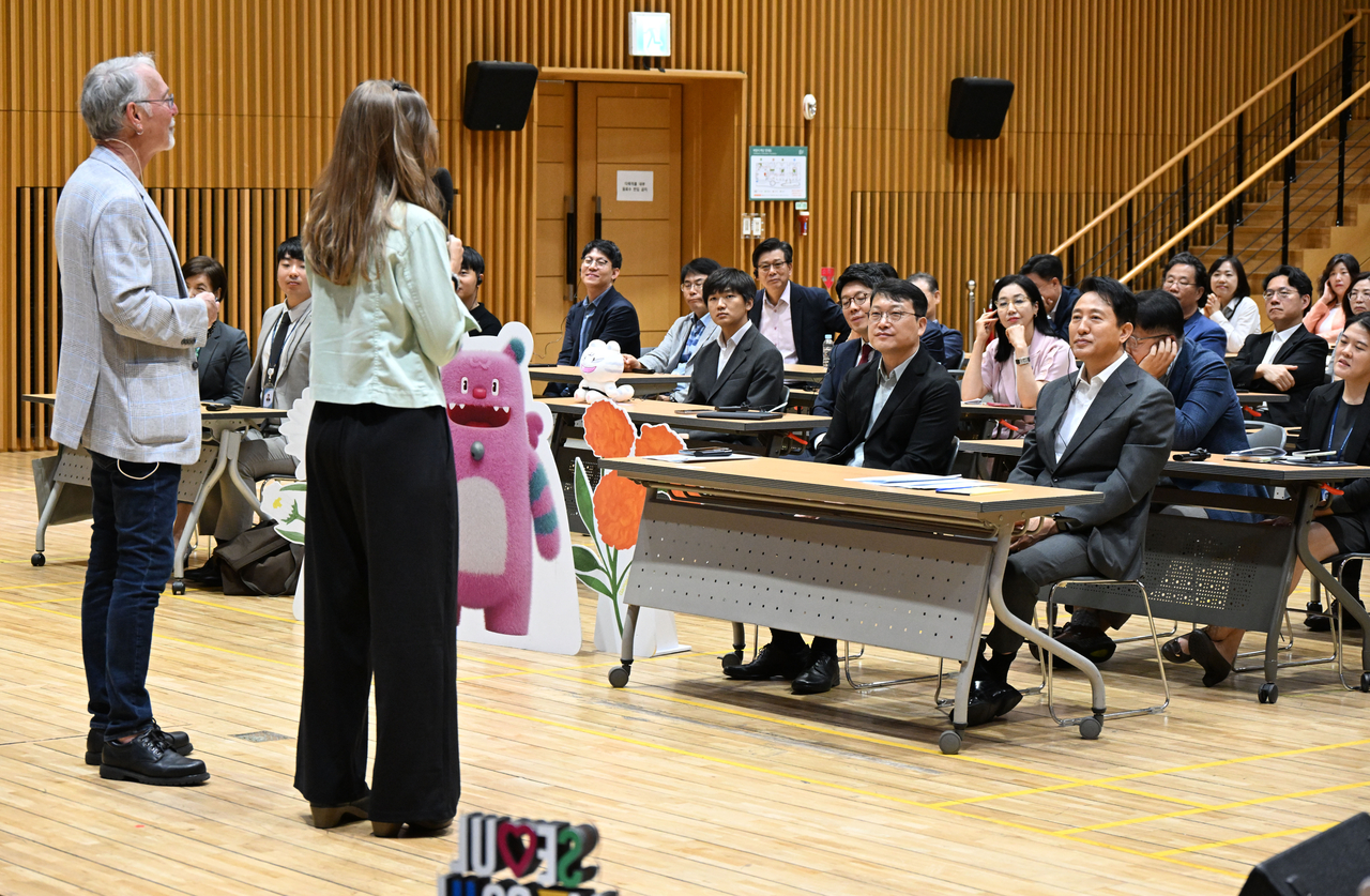 이날 샘 리처드 교수 부부는 서울시청 다목적홀에서 열린 ‘제94회 미래서울 아침특강’에서 ‘인기 그 너머: 한류와 서울이 만들어가는 글로벌 미래’라는 주제로 강연했다. ‘미래서울 아침특강’은 ‘서울의 미래를 깨우는 시간’을 슬로건으로 서울시 간부와 직원이 급변하는 행정환경 속에서 시정 핵심 가치와 미래도시 서울 비전에 대한 인사이트를 얻고 학습하는 자리다. 이날 강연에는 오세훈 시장을 비롯한 서울시 직원 250여 명이 참석했다.