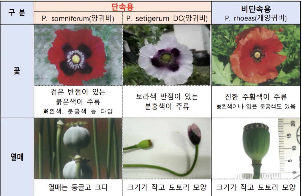한편 양귀비는 일반인도 자유롭게 재배할 수 있는 관상용 품종과 재배가 금지된 마약 원료용 품종으로 나뉜다.