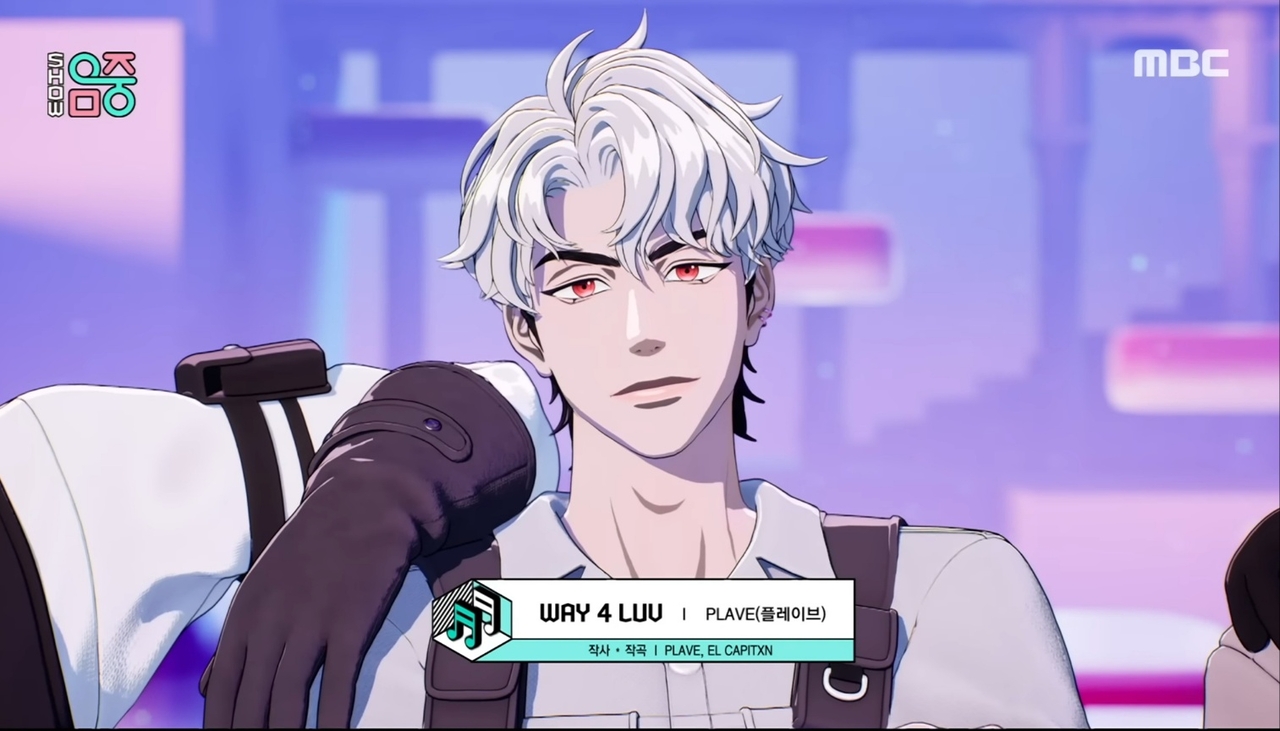 | 지상파 음악방송에 버츄얼 아이돌 ‘플레이브’가 출연한 모습. [MBC 유튜브 갈무리] |