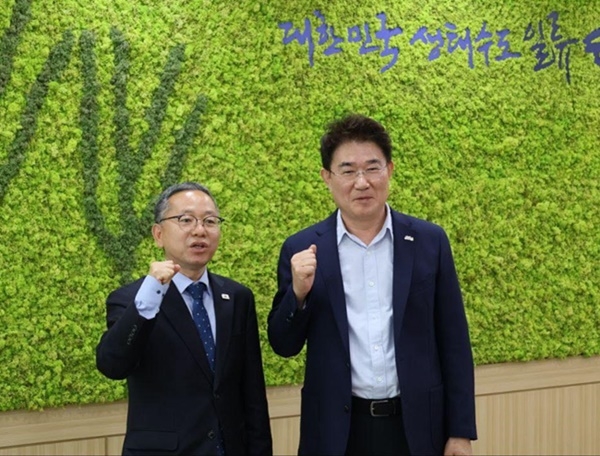 | 김문수 국회의원(왼쪽)과 노관규 순천시장. [사진 순천갑 사무소] |