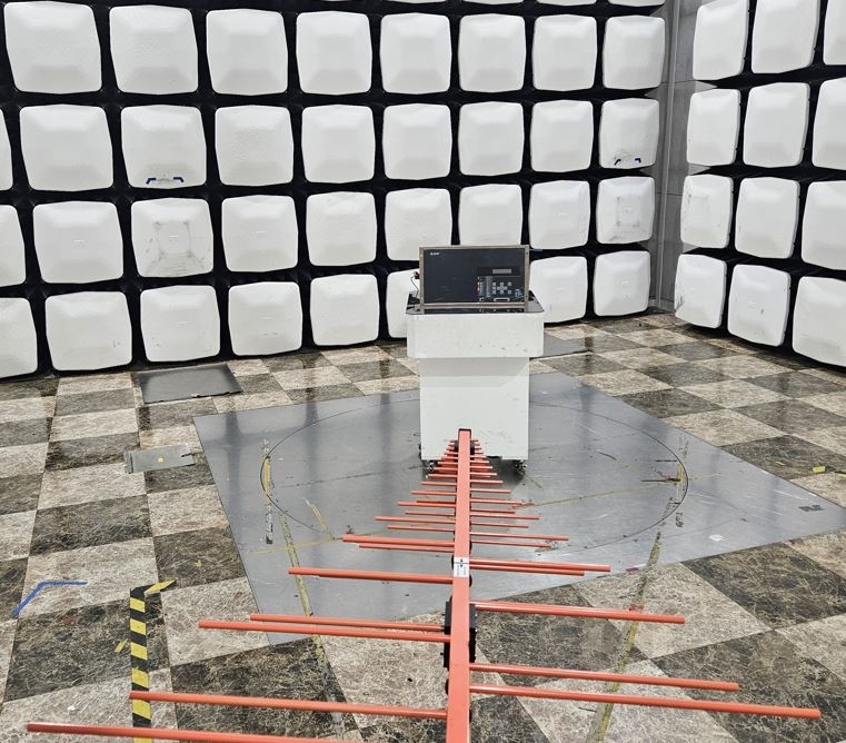 | 한국전기연구원(KERI) 시험인증 설비에서 보호계전기 성능 검증이 진행되고 있다.[KERI 제공] |