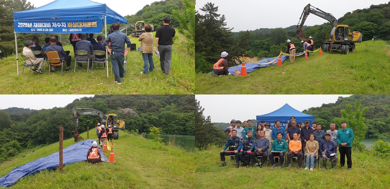훈련은 금안저수지 붕괴 상황을 가정해 상황 전파, 대피경로 및 절차 점검, 응급 복구 준비 등 단계별 시나리오에 따라 진행했고 특히 하류 지역 주민의 인명 피해 최소화를 위한 실전형 대피 훈련에 중점을 두고 실시했다.