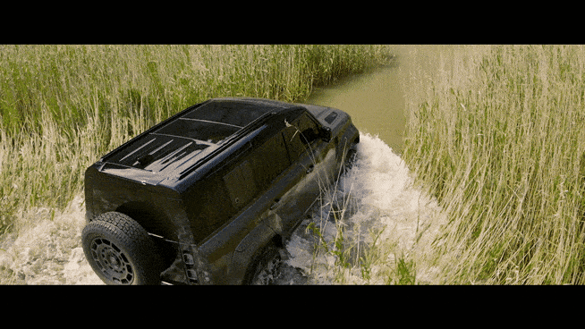 | 디펜더 옥타가 물길을 통과하고 있다. |