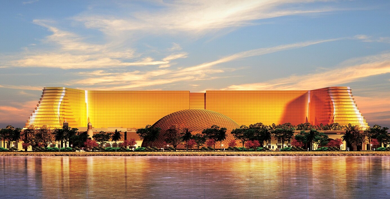 황금색 봉황 닮은 대칭형 복합 리조트