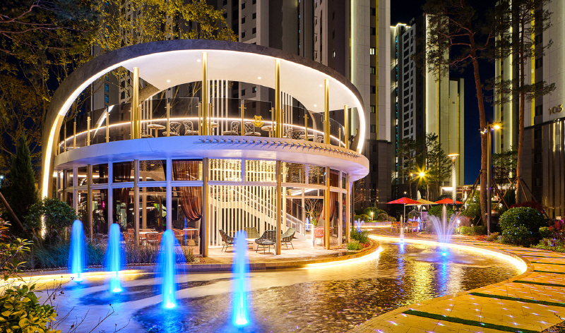 이곳의 조경은 건설사 DK아시아가 삼성물산 리조트 부문과 협업해 완성한 작품이다. 산책로 주변으로는 맑은 물소리가 잔잔히 흐르고 있으며, 여기에 차분한 음악까지 어우러져 어디를 걷든 마음이 편안해지는 분위기가 자연스럽게 조성된다. 단지 안을 걷고 있는 것만으로도 마치 유명 해외 리조트를 방문한 듯한 여유로움을 느낄 수 있다.