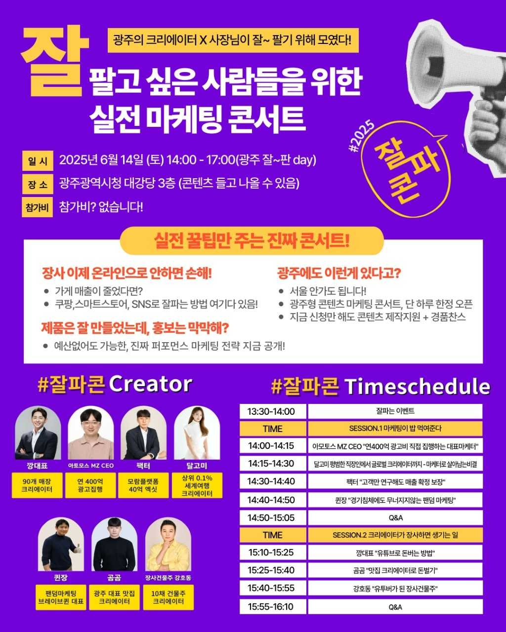 이번 콘서트는 광주 지역 소상공인과 크리에이터를 대상으로 마케팅과 콘텐츠 제작에 실질적인 도움을 제공하기 위해 마련됐다. 참가비는 무료다.