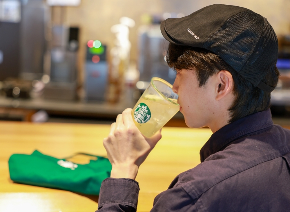 | 스타벅스 파트너가 ‘쿨 라임 피지오’를 마시고 있다. [스타벅스 제공] |