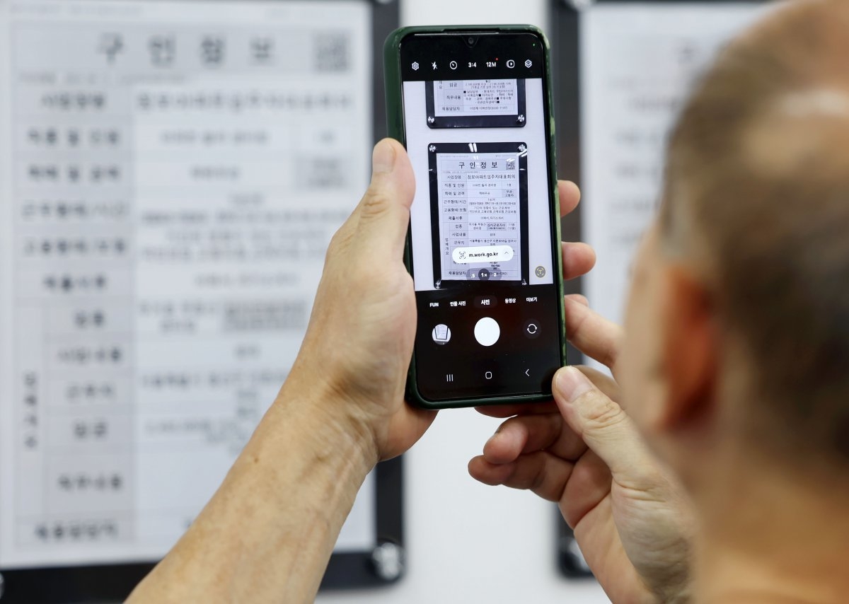 | 서울의 한 고용센터를 찾은 고령층 구직자가 일자리 정보 게시판을 살펴보고 있다. [뉴시스] |