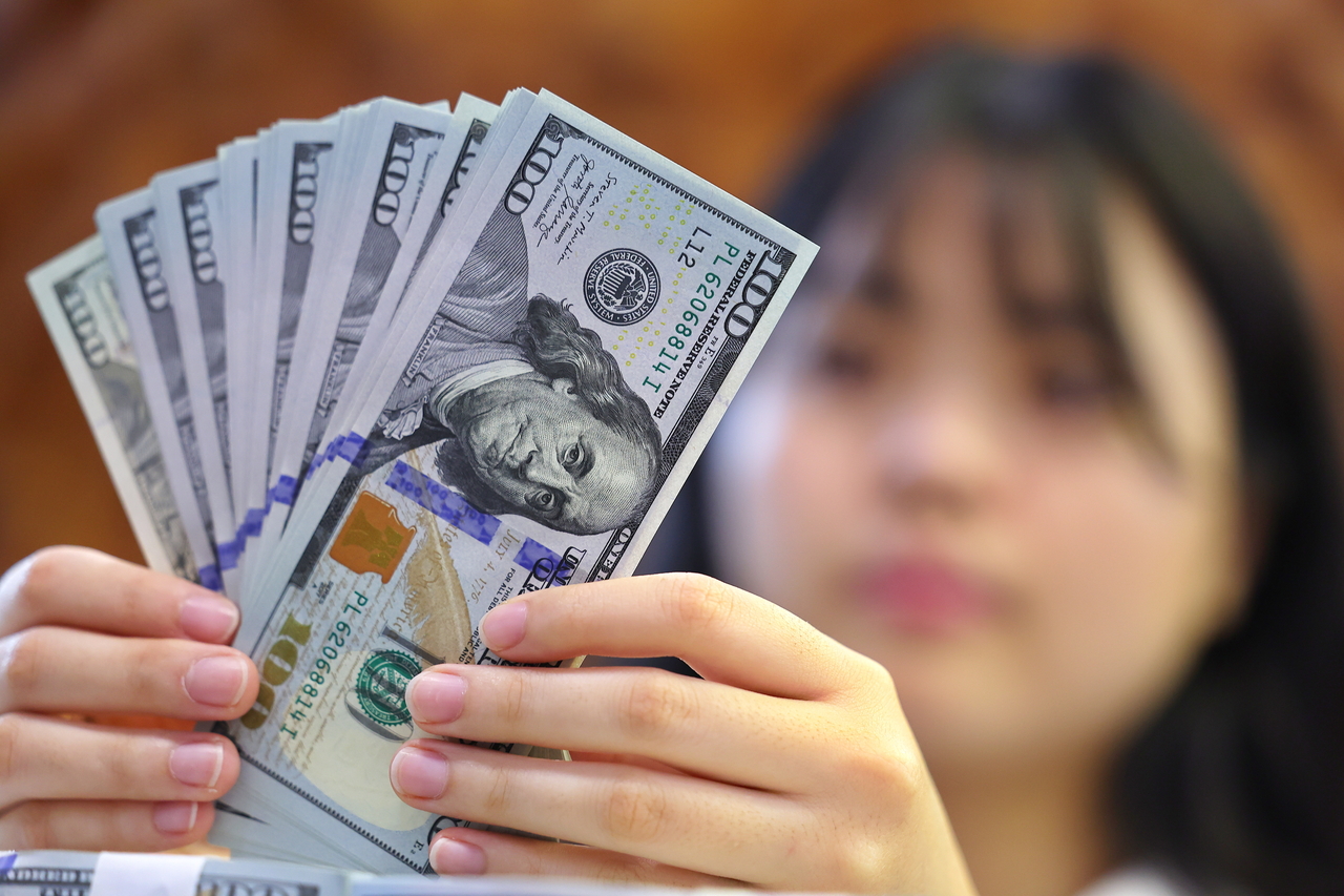| 8일 서울 중구 하나은행 위변조 대응센터에서 직원이 미국 달러를 정리하는 모습. [연합] |