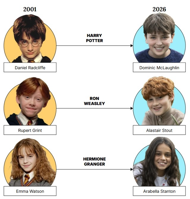 이 시리즈를 제작하는 공동 프로듀서 프란체스카 가드너와 마크 마이로드는 “우리의 해리와 헤르미온느, 론을 찾게 돼 기쁘다”며 “이 특별한 배우 세 명의 재능은 정말 놀랍고, 그들이 스크린에서 함께 펼칠 마법을 세계가 목격하게 될 것”이라고 말했다.