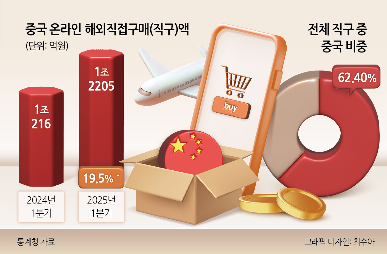 통계청 온라인쇼핑동향을 살펴보면 1분기(1~3월) 중국의 온라인 해외직접구매(직구)액은 전년 동기 대비 19.5% 증가한 1조2205억원이었다. 전체 온라인 직구액 내 중국 비중은 62.4%로 직구 국가 가운데 1위를 차지했다.